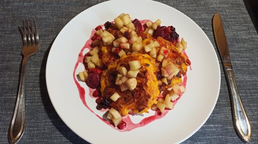 Оладьи из тыквы. С яблоком. Кулинария для домашнего использования. Простые продукты простой рецепт. Лёгкий завтрак.
