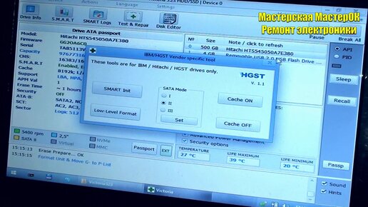 Сброс смарт smart reset на жестком диске HDD laptop Hitachi HGST при помощи программы Виктория Victoria