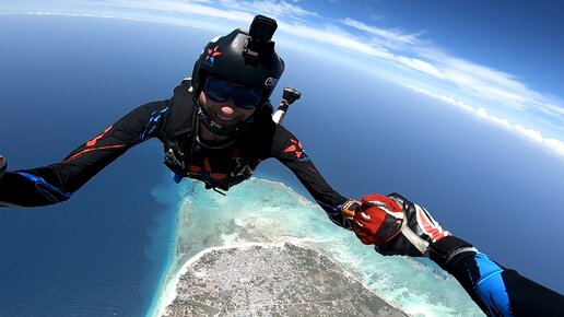 Прыжок с парашютом над Занзибаром с камеры Димы и улыбающаяся Ира в кадре