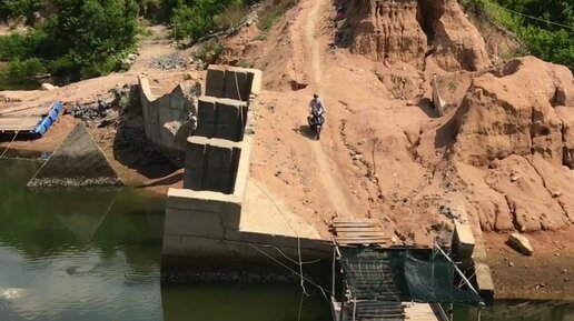 Ничего необычного! Просто мопед тонет в реке, а мост унесло теченьем.