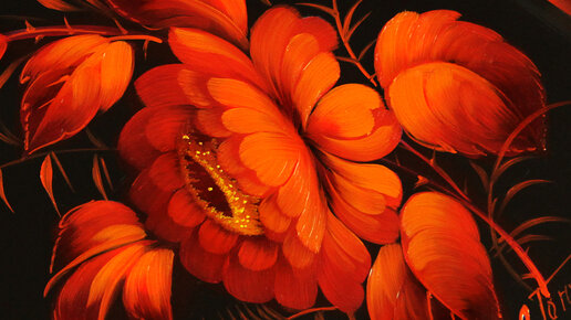 Красная роза на черном фоне. Жостовская роспись. Как нарисовать