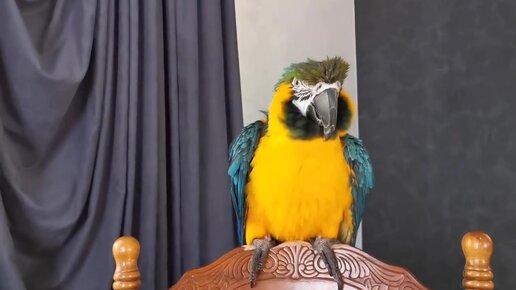 Говорящий попугай ара после душа. Мокрый попугай ара Рома сохнет и нахохлился