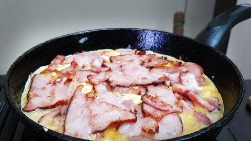 Яичница с беконом, сыром и жареным картофелем. Если завтрак для мужика, то только такой.