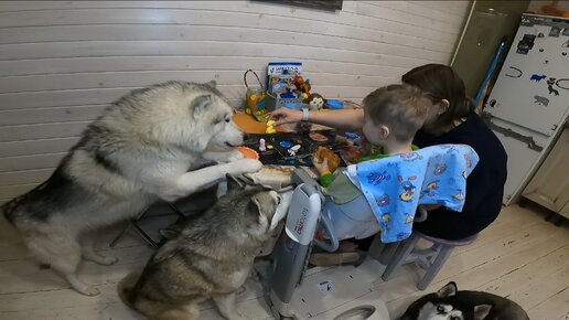 Наглые хаски и сын лишили меня самого ценного - моей вечерней булочки!