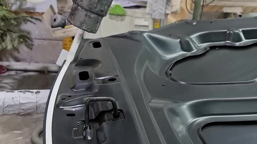 Нанесение герметика на внутреннюю часть нового капота, и это делаем мы в авто сервисе, а не на заводе