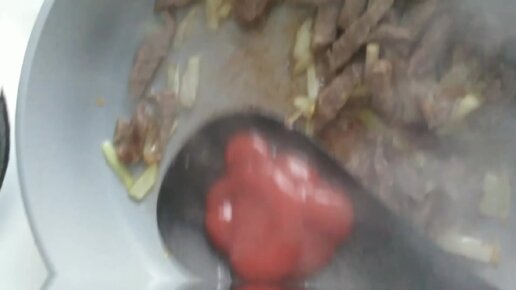 Приготовил кисло-сладкую подливку с мясом, для гарнира в виде гречки