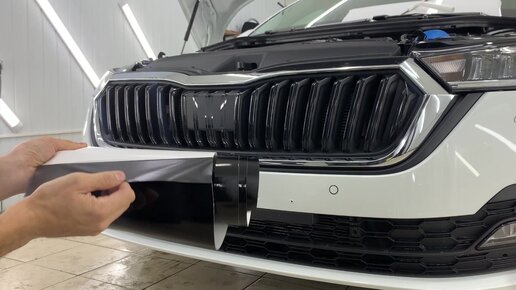 Красиво клеит пленку! Антихром. Оклейка решетки Шкода Октавия без снятия!