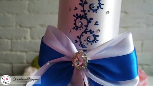 Набор свадебных свечей "Великолепная пара" (3 свечи без подсвечников) (белый/синий)