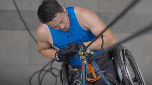 Альпинист в инвалидном кресле забрался на 300-метровый небоскреб