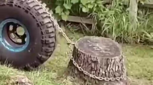 Как с помощью колеса вырвать пень.