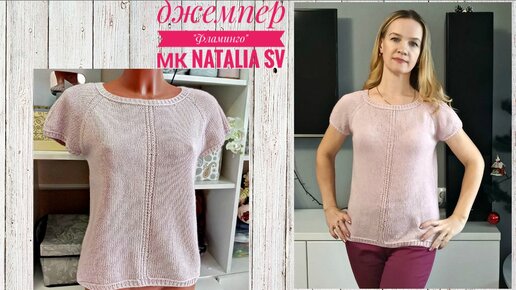 Джемпер с коротким рукавом "Фламинго". Вязаная футболка спицами. Экспресс-мк