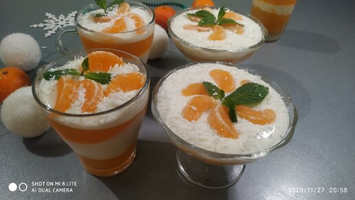 Новогодний мандариновый десерт Рождество в стаканчиках.