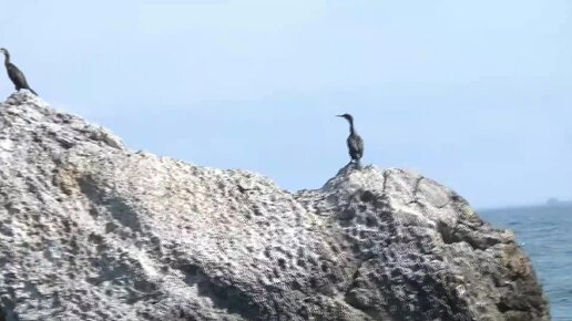 Сентябрь, холодное море, мы с мужем и важный баклан, прогоняющий чайку.