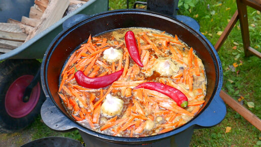 Как приготовить плов в казане на костре. Рецепт узбекского плова.