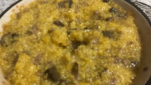 Кукурузная каша с фаршем и шампиньонами в горшочке!