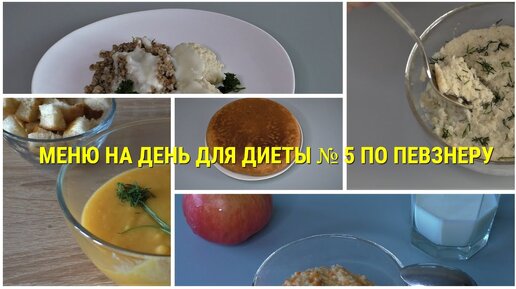 Меню на день для диеты№ 1 и № 5 по Певзнеру. 5 блюд - завтрак, перекус, обед, ужин
