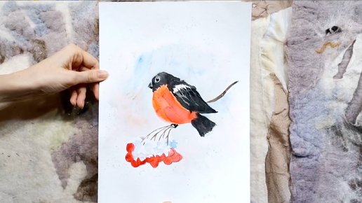 Рисунок акварелью "Снегирь"