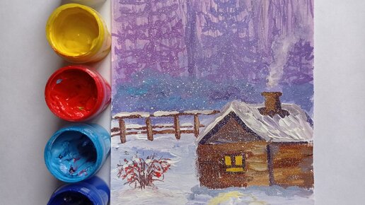 Зимняя сказка | Простое рисование гуашью