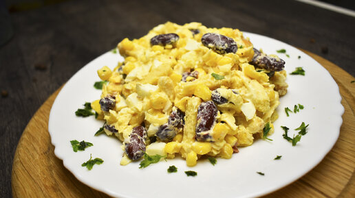 Вкуснейший салат с фасолью и сухариками. Салат на скорую руку