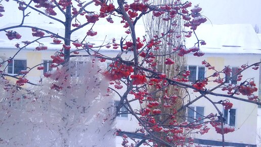 Сегодня на обед у птиц: рябина. Пиршество дроздов.