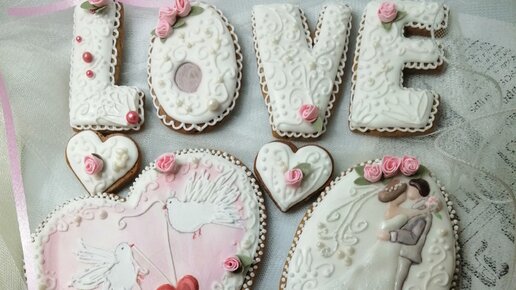 Немного имбирного теста и глазури, и свадебный подарок готов. Создание свадебных имбирных пряников. Заливка и отрисовка.