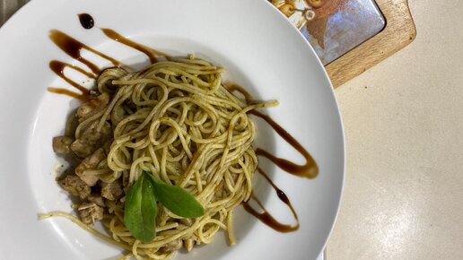 Паста с индейкой и соусом песто. Быстрый ужин