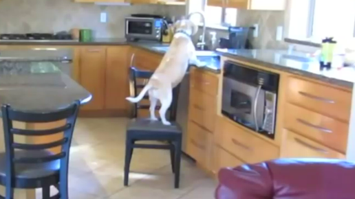 Пока хозяев нет дома. Пёс тащит котлеты из микроволновки