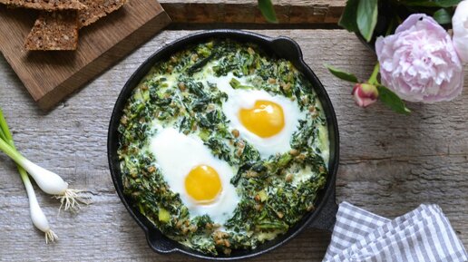 Оригинальный рецепт яичницы со шпинатом, готовится очень легко и быстро. Делюсь рецептом