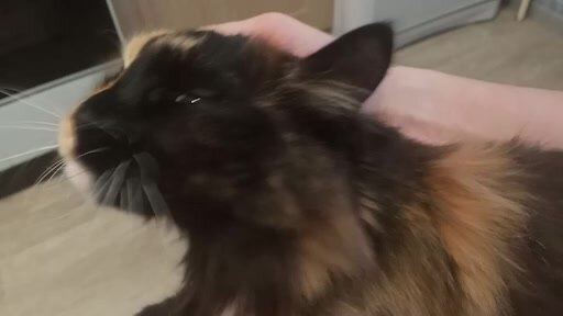 Трехцветная кошка снова пришла ночью на кухню и громко мурчит