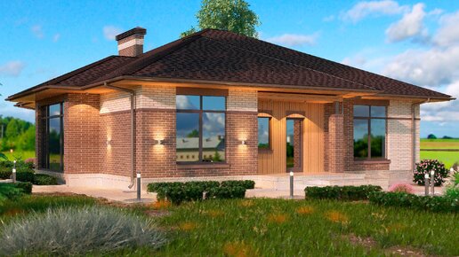 Проект одноэтажного дома 150 м2 из газобетона с покрытием мягкой черепицей и 3 спальнями по 20 м2 в каждой. Ссылка в описании