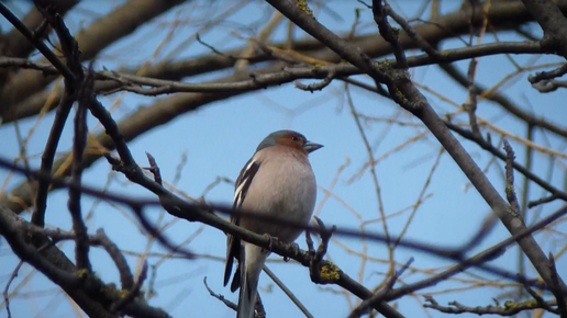 Зяблик поёт свою арию и другие птицы в парке весной. Утро. Городская идиллия.