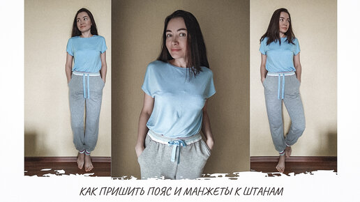 Показываю пошагово как пришить пояс и манжеты к штанам на резинке