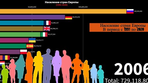 Население стран Европы в период с 1991 по 2020