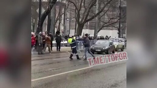 Во время протестов в России, мужчина напал на сотрудника Гаи пробив тому в челюсть