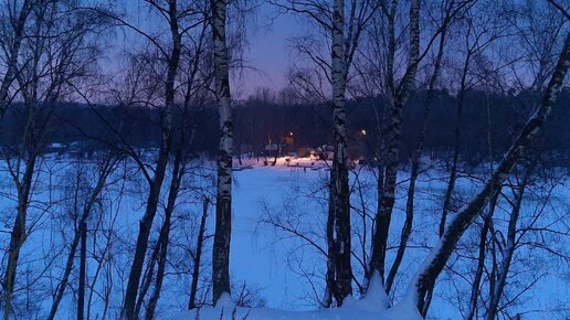 Берег реки зимним вечером.