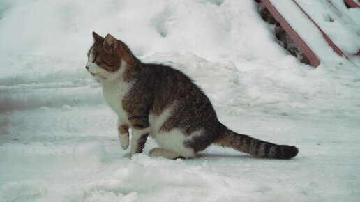 Встретили уличных пушистых котиков, они очень весело играли