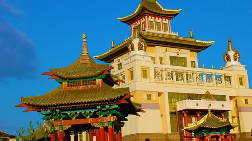 Красота Золотого храма Калмыкии на заходе солнца