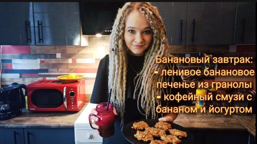 Банановый завтрак за 20 минут: ленивое банановое печенье из гранолы и кофейный смузи с бананом и йогуртом