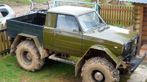 Умелец построил вездеход в кузове пикап на базе УАЗ. Теперь на нем можно ездить куда угодно.