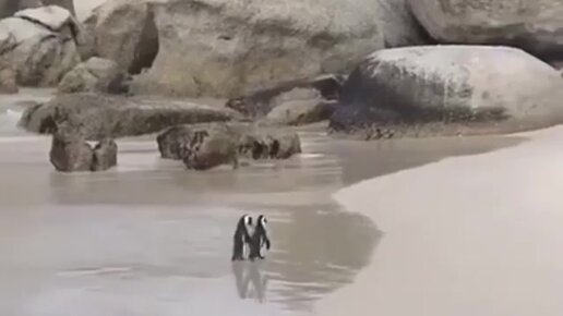 Влюбленные пингвины с африканского пляжа.