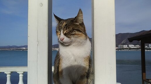Всем доброго утра от любимой кошки-трёхцветки, загорающей на январском солнышке