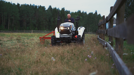 Трактор СКАУТ Т-254 косит траву на конюшне