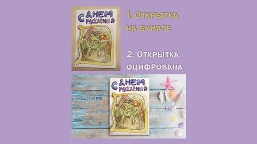 Показываю как оцифровать нарисованную на бумаге открытку.