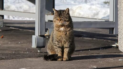 Серый кот сидел возле автобусной остановки. Его заметила лишь одна маленькая девочка