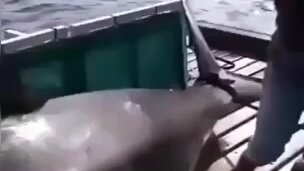Удивительно, как эта гигантская акула не перевешивает рыболовную лодку.