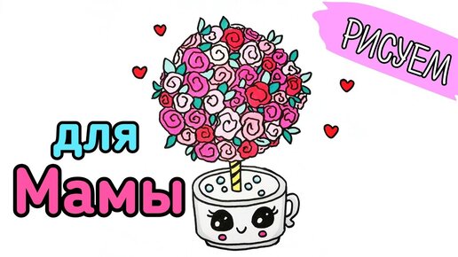 Рисунок для мамы/рисунок букет роз/букет цветов рисунок/кавайный рисунок для мамы