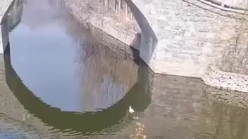 Утка возглавляет стаю рыб. Очень необычное зрелище.