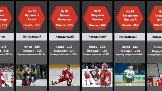 100 лучших бомбардиров в истории чемпионатов России/СССР по хоккею (1946/47 - 2019/2020)