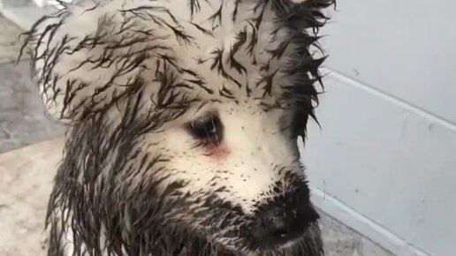 Щенок и его мама упали в грязь