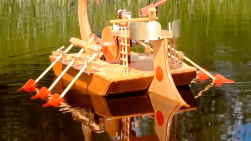 Самодельный кораблик на вёслах.
